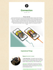My hope is that Connection will unite and inspire faith through beauty, goodness, and truth. Thank you also for the feedback and positive encouragement. Please get in touch with any constructive feedback or suggestions.